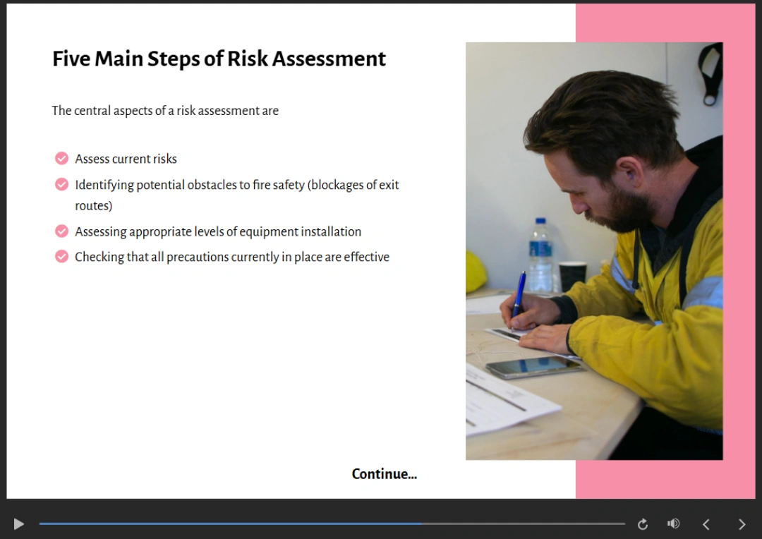 In this Fire Marshal Level 3 Training Course, you’ll familiarise with fire and safety legislation, fire marshal duties and fire risk assessments. Through video demonstrations and expertly designed course modules, you’ll be trained on the safety measures, such as how to assess risks in the workplace, learning how to use a fire extinguisher correctly and how to safely evacuate your co-workers.