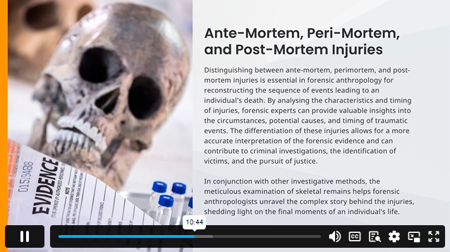 | Module 9: Forensic Anthropology and Forensic Science Integration | 00:26:00 | ||