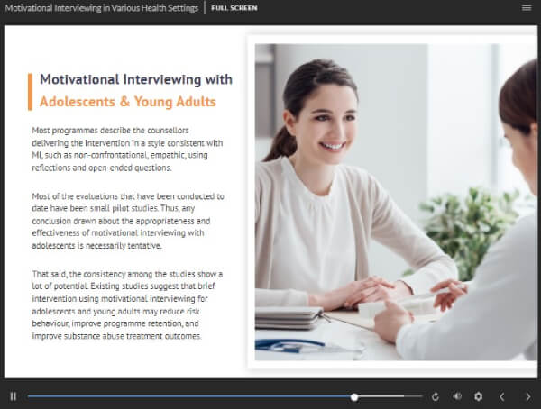 All of our courses, including this Motivational Interviewing, are fully accredited, providing you with up-to-date skills and knowledge and helping you to become more competent and effective in your chosen field.