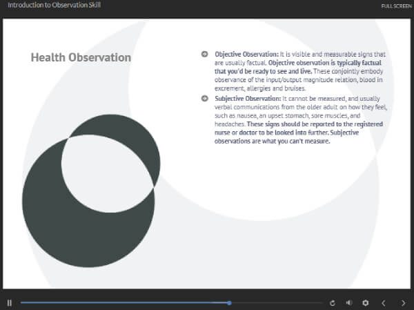By the end of the observation skills for carers course, learners will be able to: