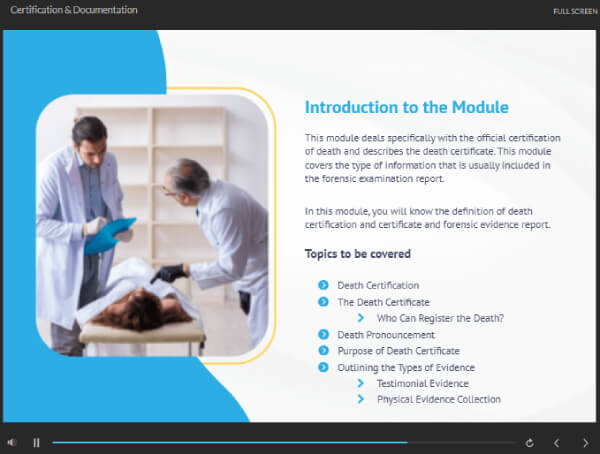 | Module 01: Introduction to Verification of Death | 00:11:00 | ||
